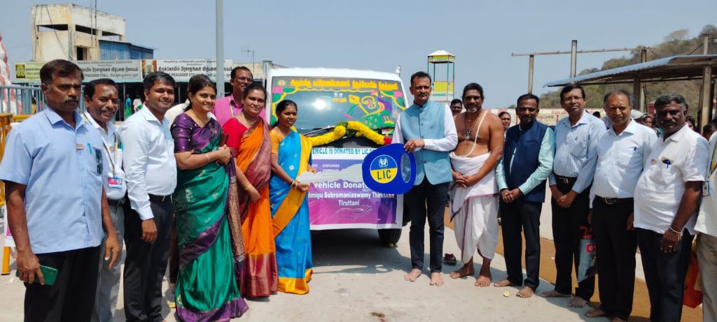 திருத்தணி முருகன் கோயில் பக்தர்கள் வசதிக்கு மினி வேன் இலவசமாக வழங்கிய எல்.ஐ.சி இந்தியா நிறுவனம்………