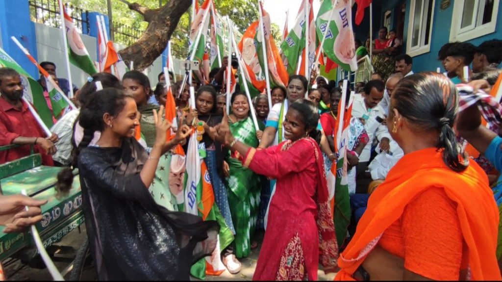 தேசிய ஜனநாயக கூட்டணியின் அனைத்திந்திய அண்ணா திராவிட முன்னேற்றக் கழகம் சார்பில் சென்னை புளியந்தோப்பில் அமைந்துள்ள அம்பிகா பவன் அருகில் உள்ள திரு.வி.க நகர் சட்டமன்ற தொகுதியின் வேட்பாளர் திருமதி.பொற்கொடி ஆம்ஸ்ட்ராங் அவர்கள் அம்பேத்கர் சிலை அருகில் அப்பகுதியில் வீடு வீடாக சென்று வாக்குகளை சேகரித்தார் அங்குள்ள பொதுமக்கள் அவருக்கு ஆரத்தி எடுத்து தேங்காய் உடைத்து மலர் தூவி உற்சாக வரவேற்பு அளித்தனர் மற்றும் கூட்டணி கட்சியினர் அனைவரும் உடன் இருந்தனர்.